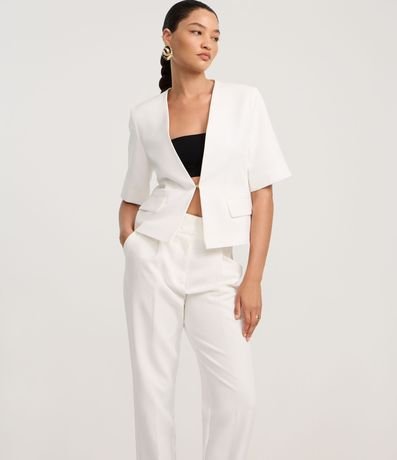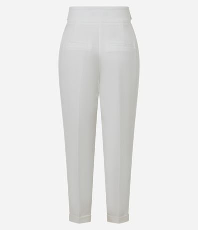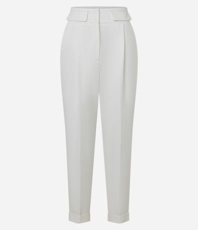 Ref: Calça cenoura em alfaiataria com barra italiana, cós simples e detalhe de lapela.