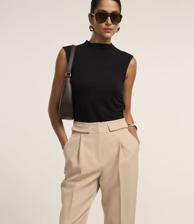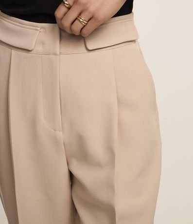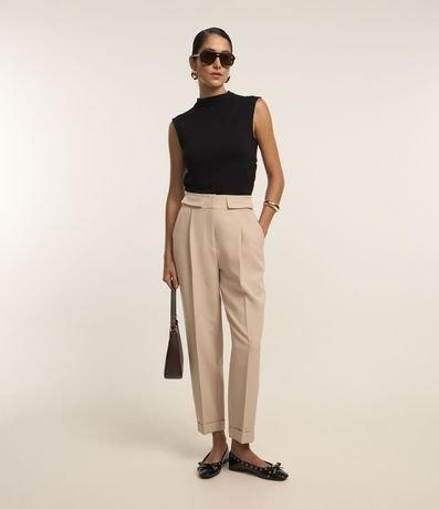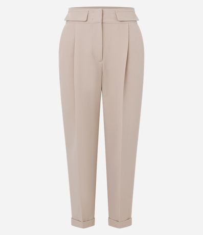 Ref: Calça cenoura em alfaiataria com barra italiana, cós simples e detalhe de lapela.