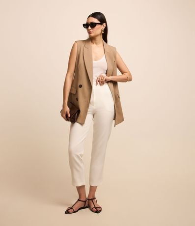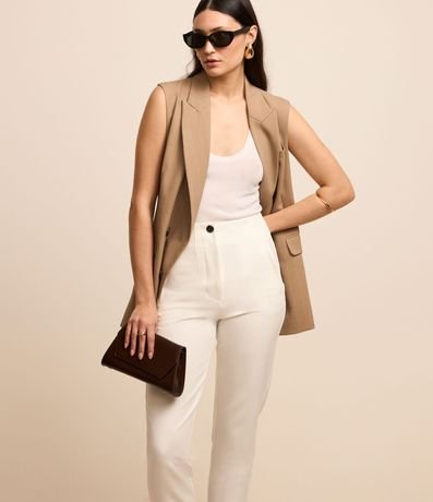 Ref: Calça cenoura alfaiatada com botão com ícone. O corte alfaiatado é o toque de sofisticação e elegância desta calça.