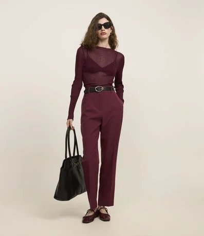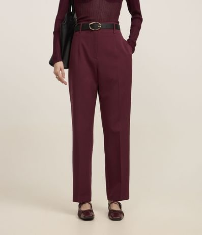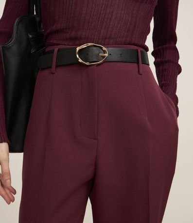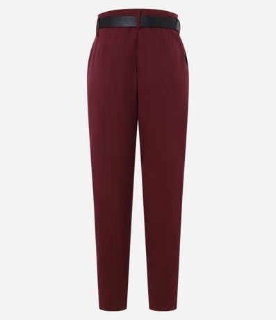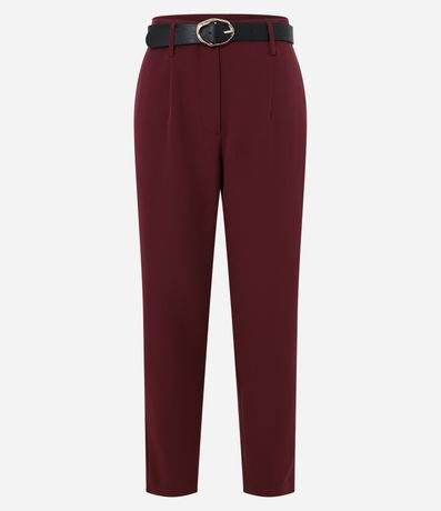 Ref: Calça cenoura alfaiatada feminina, com cinto fivela em material sintético e superfície sem estampa.