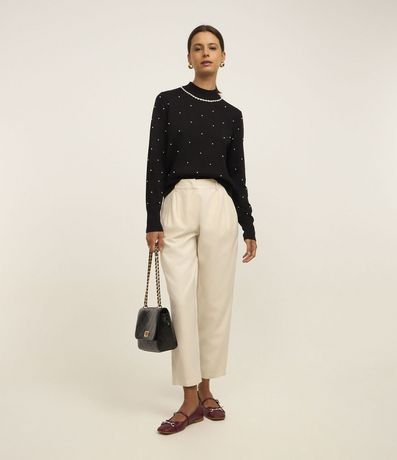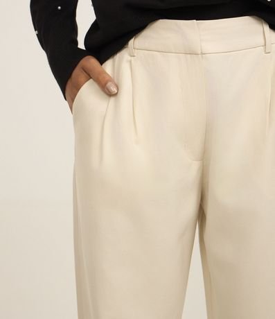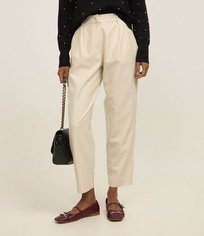 Ref: Calça feminina de modelo cenoura, confeccionada em poliéster, de corte alfaiatada e com pregas. Não possui estampa e conta com fechamento frontal tradicional.