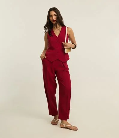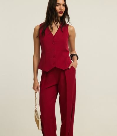 Calça Cenoura Alfaiataria com Pregas e Botões na Barra