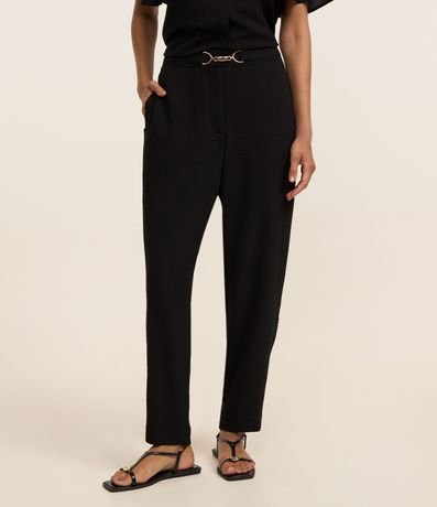 Ref: Calça cenoura de cintura alta com passantes na cintura além de cinto com fivela diferenciada e bolsos. Dispõe de tecido com efeito airflow que confere um aspecto de amassado com sofisticação.
