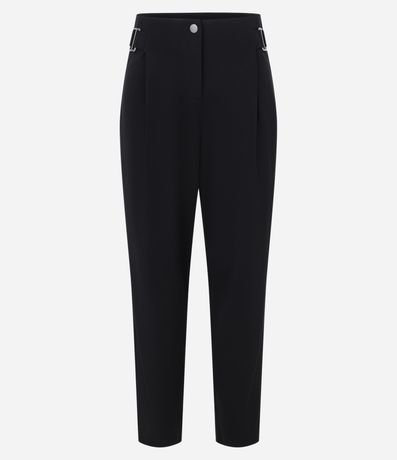 Ref: Cal,a cenoura de cintura alta, confeccionada em crepe de poliéster com elastano. Peça dispõe de fivelas nas laterais, pregas além de fechamento tradicional por botão e zíper mais bolsos.