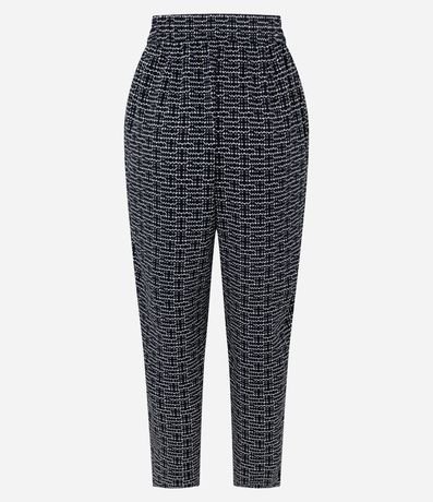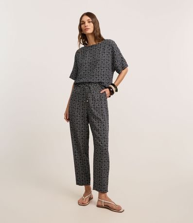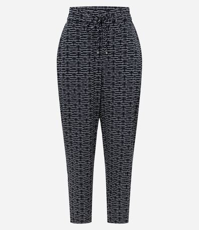 Ref: Calça cenoura fluida, confeccionada em crepe, com cintura alta e amarração no cós. Peça com estampa geométrica. Este produto possui material mais sustentável em sua composição, sendo ambientalmente mais responsável.