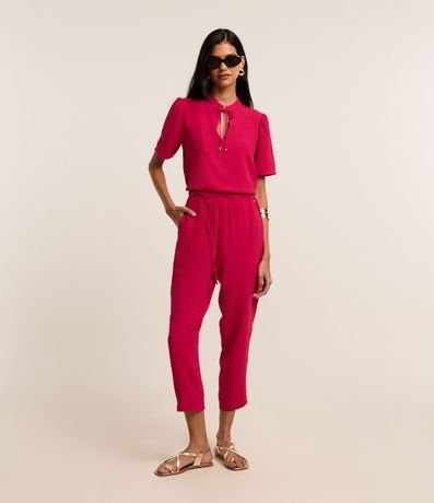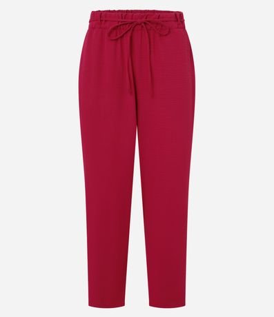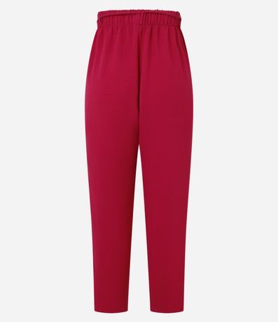 Ref: Calça feminina no modelo cenoura com cós elástico, cintura alta, passantes e cinto de cordão para amarração. Nas laterais contém bolsos com rebites. Esse produto contém melhores práticas em sua produção que permitem maior cuidado com o meio ambiente.