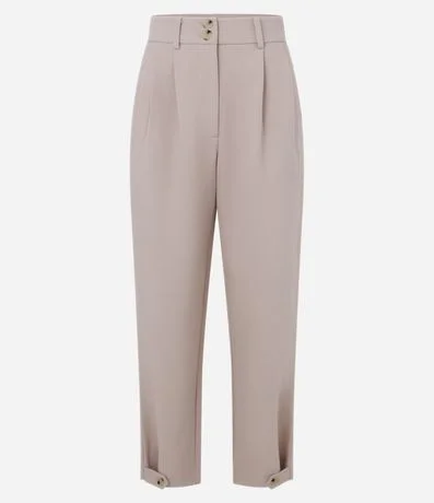 Ref: Calça no modelo cenoura de alfaiataria com detalhe na barra, botões no cós e fendas frontais.