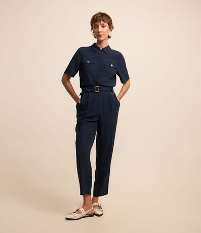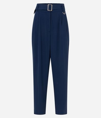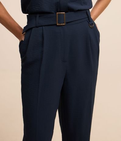 Ref: Calça cenoura feminina, confeccionada em airflow, com cinto fivela, pregas e elástico nas costas.