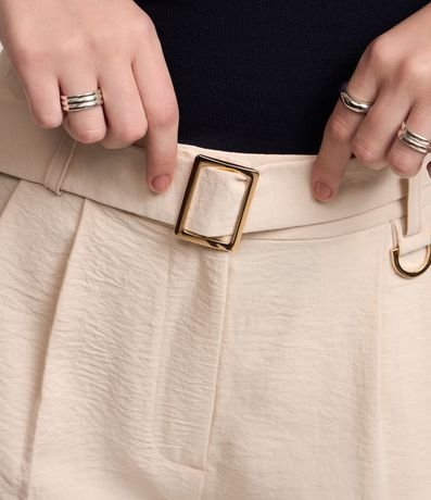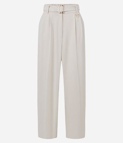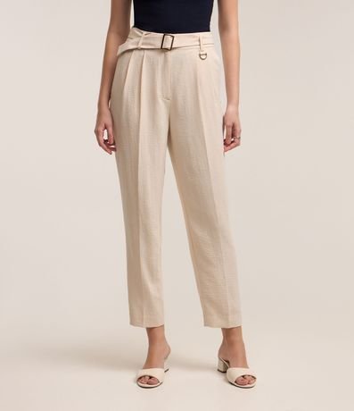 Ref: Calça cenoura feminina, confeccionada em airflow, com cinto fivela, pregas e elástico nas costas.