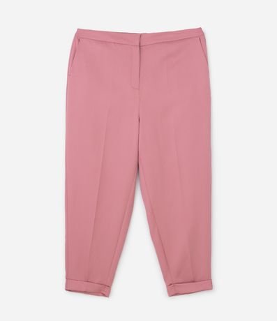 Ref: Calça feminina de modelo cenoura, com barra mais justinha e dobrada. Possui bolsos frontais e não tem estampa.