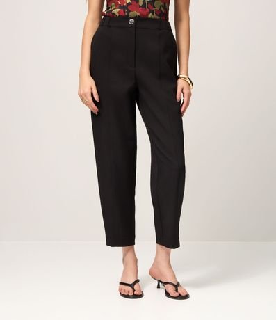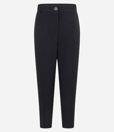Ref: Calça feminina confeccionada em crepe com modelagem cenoura, cintura alta e cós com elástico para maior conforto. Possui fechamento frontal com botão e bolsos traseiros. Peça versátil para compor looks elegantes e casuais com caimento sofisticado.