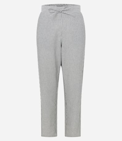 Calça Cenoura Listrada em Sarja Com Cintura Alta