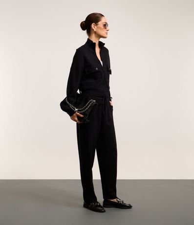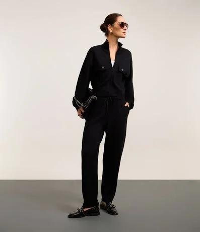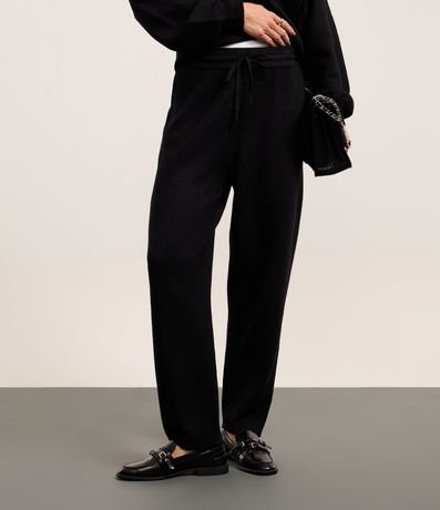 Calça de cintura alta, confeccionada em tricô com caimento leve, com elástico e amarração na cintura mais fundo mesclado. Este produto possui viscose certificada em sua composição, sendo ambientalmente mais responsável.
