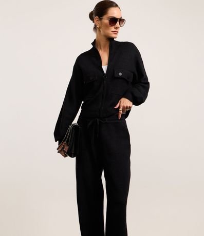 Calça Cintura Alta em Tricô Mescla com ELástico no Cós
