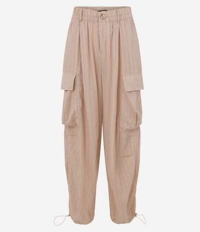 Ref: Calça em tricoline com textura jacquard, cintura alta, bolsos frontais, bolsos cargos ajustadores na barras.