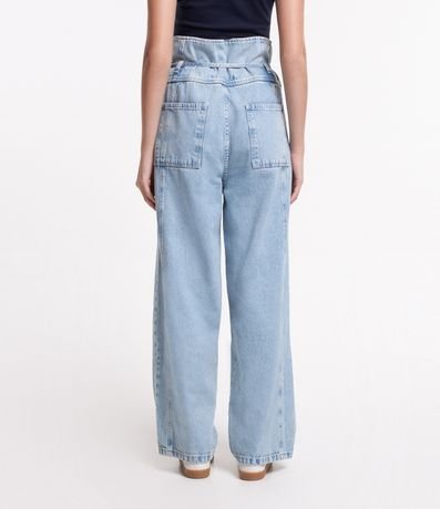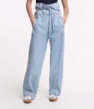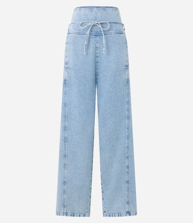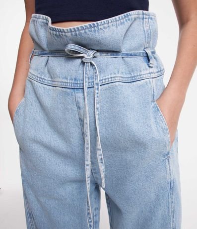 Ref: Calça clochard confeccionada em jeans com cintura alta e amarração na cintura. Conta com bolsos frontais e traseiros.