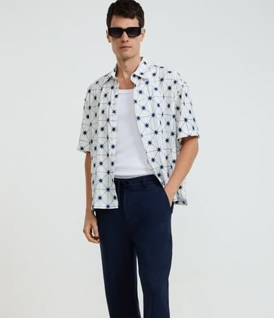 Calça masculina confeccionada em viscose mais sustentável, com tecnologia performance. Possui cós com passante, cordão para amarração, fechamento tradicional e bolsos.