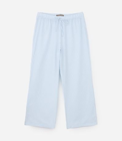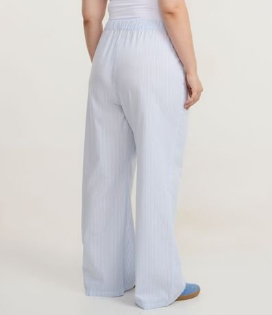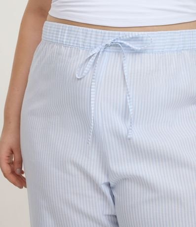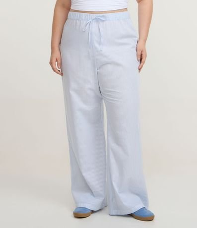 Ref: Calça feminino Curve & Plus Size confeccionado em algodão certificado BCI, através de boas práticas ambientais. Possui estampa de listras em fio tinto, modelagem reta, caimento solto, cós elástico e cordão para ajuste.