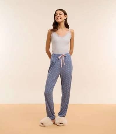 Ref: Calça de pijama com elástico e amarração na cintura, além de coracõezinhos estampados em toda a peça. Este item conta com toque suave. Este produto possui fio reciclado em sua composição, sendo ambientalmente mais responsável.