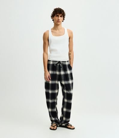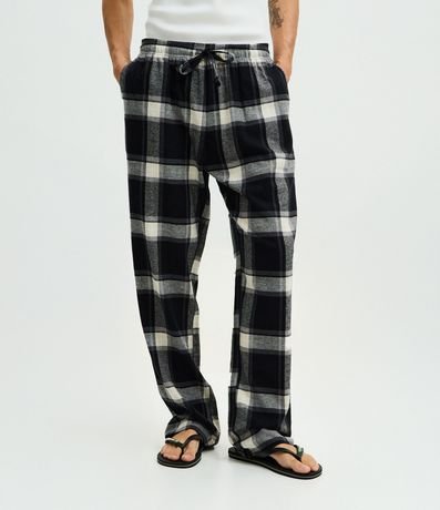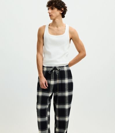 Calça de Pijama em Flanela Xadrez com Cordão no Cós
