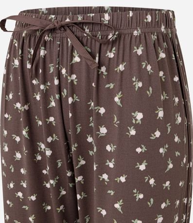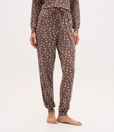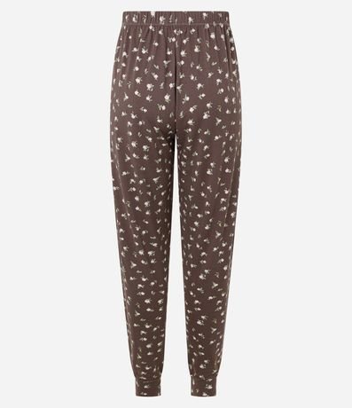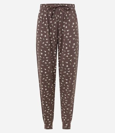 Ref: Calça de pijama feminino confeccionado em poliéster certificado em peach touch. Possui estampa floral, modelagem jogger, barra ajustada, cós elástico com amarração frontal e tecido macio.