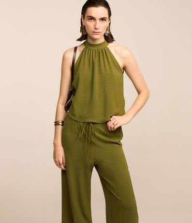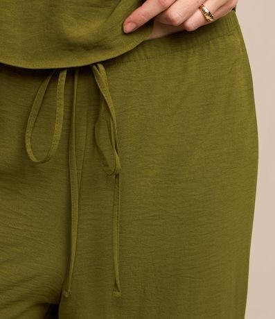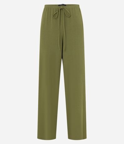 Ref: Calça feminina, confeccionada em airflow, com amarração no cós e superfície sem estampa.
