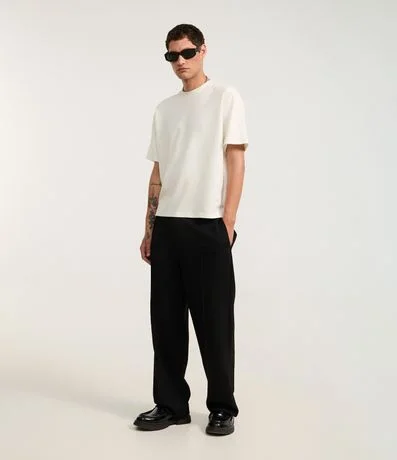 Ref: Calça masculina em alfaiataria, possui cós elástico, corão para amarração, fechamento tradicional com botão e zíper e bolso.