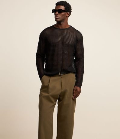 Ref: Calça masculina confeccionada em maior tecnologia, cós com passantes, fechamento tradicional, bolsos e detalhe em pregas.