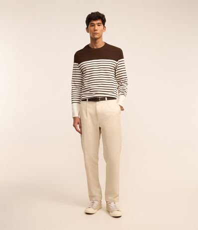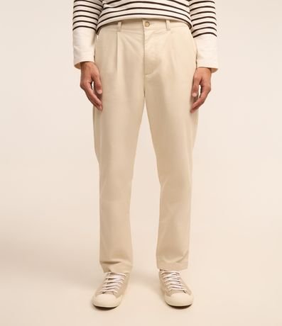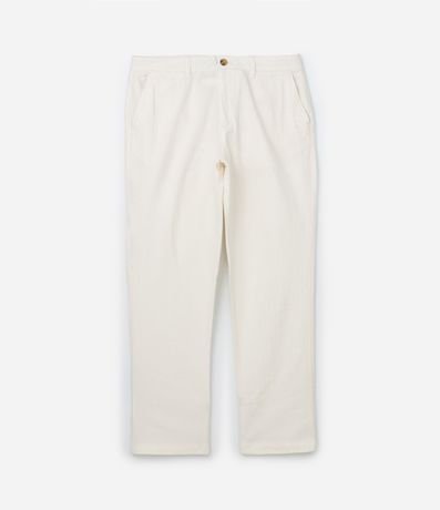 Ref: Calça masculina confeccionada em algodão mais sustentável com cós passantes, fechamento tradicional, bolsos e textura.