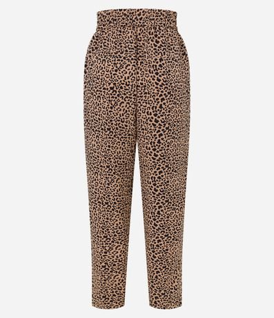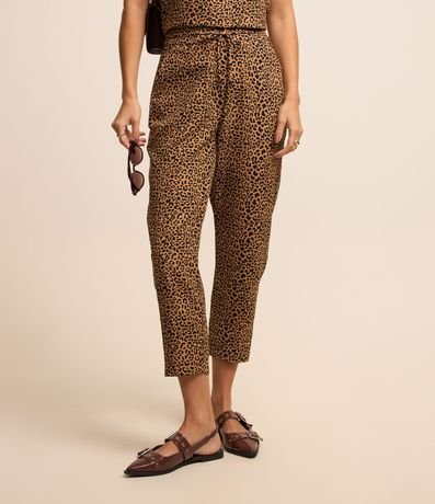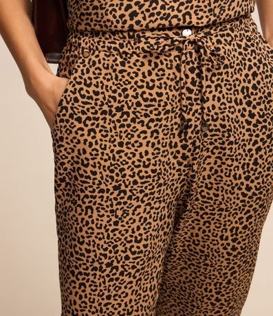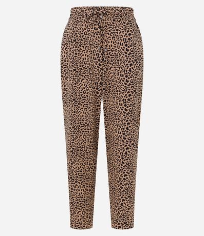 Calça em Crepe com Amarração no Cós e Estampa Animal Print