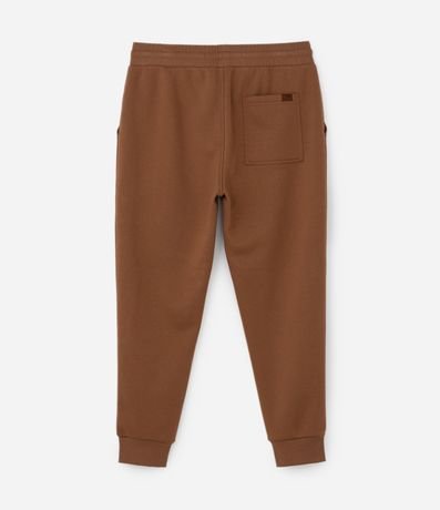 Calça masculina em moletom, com cós elástico, bolsos e barra ajustada.