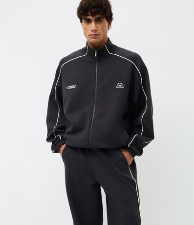 Calça em Moletom com Felpa Liso e Listra nas Laterais