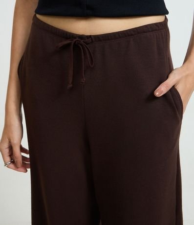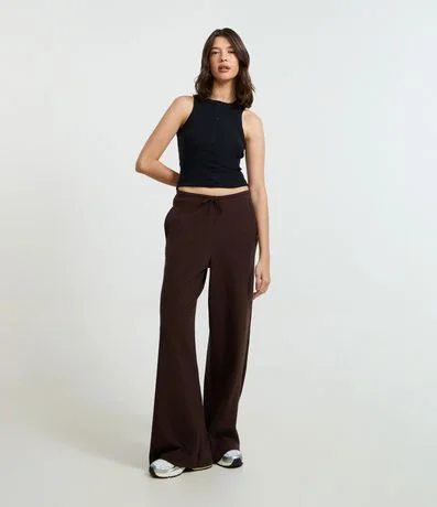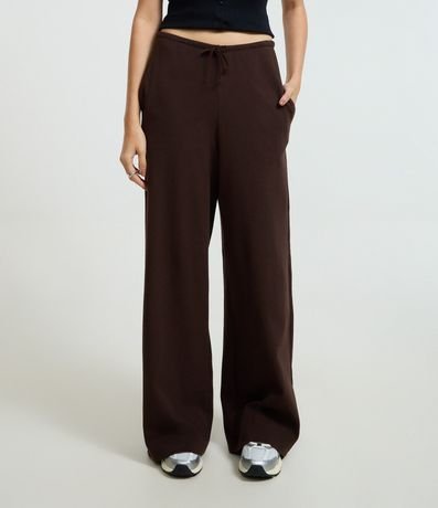 Calça com cós elástico, cordão para ajuste na cintura, sem estampa e confeccionada em ribana com algodão mais sustentável.