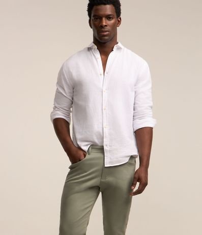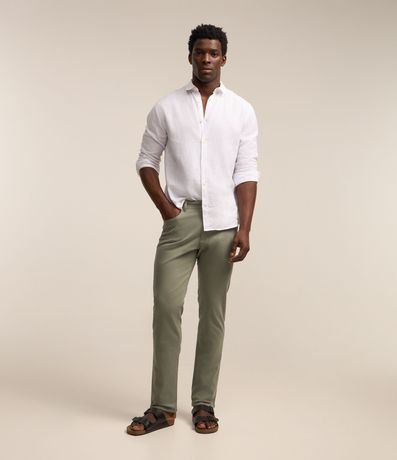 Ref: Calça masculina, confeccionada em sarja com mais flexibilidade promovendo maior conforto, cós em elastano. Peça lisa com cinco bolsos, sendo um deles mini embutido na frontal.