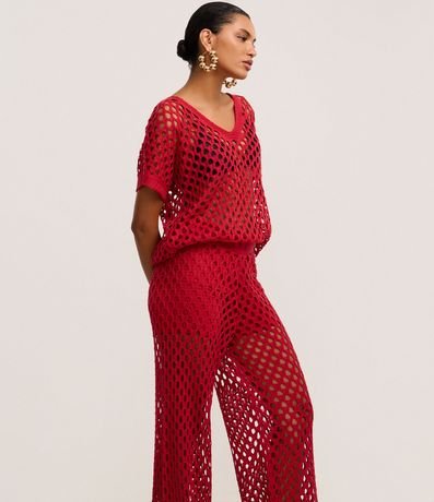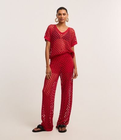 Ref: Calça em tricô com elástico no cós e pontos abertos. Peça com forro de short. Este produto foi fabricado através de processos mais sustentáveis, sendo ambientalmente mais responsável.