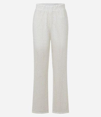 Ref: Calça de tricô telado com mini brilhos fixados.