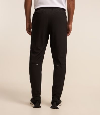 Ref: Calça esportiva, cós elástico, bolsos laterais, confeccionada em poliéster com elastano e sem estampa.