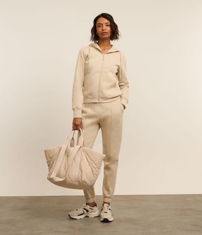 Ref: Calça feminina esportiva de moletom confeccionada em microfibra com frisos frontais. Peça produzida com algodão mais sustentável.