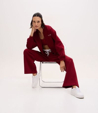 Calça esportiva feminina confeccionado em algodão naturalmente colorido através de boas práticas ambientais. Possui modelagem reta e caimento confortável, cós elástico com cordão ajustável, bolsos frontais embutidos, detalhe discreto de escrita bordada na perna e uma faixa interna de cós.