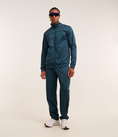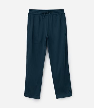 Calça esportiva em helanca, com cós elástico, bolsos e detalhes em friso.