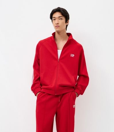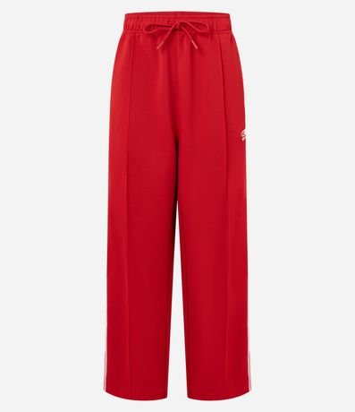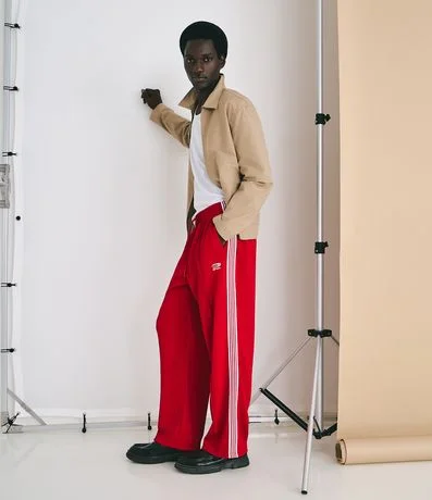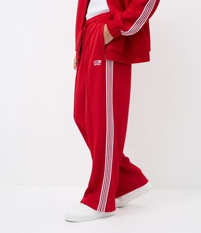 Ref: Calça masculina esportiva em helanca, com cós elástico, bolsos, listras laterais e estampa localizada. Toque confortável, secagem rápida e visual moderno,