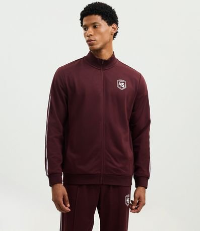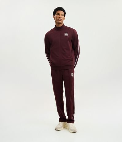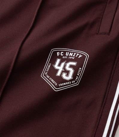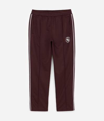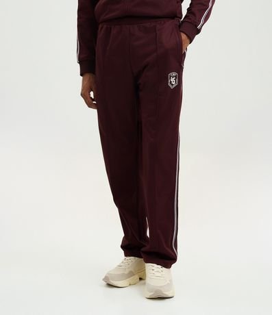 Ref: Calça masculina esportiva em helanca com listras contrastantes nas laterais e estampa localizada na parte frontal, trazendo estilo casual e esportivo. Possui cós elástico com cordão para ajuste e bolsos funcionais.