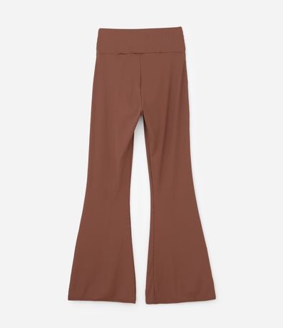 Calça esportiva feminina Curve & Plus Size confeccionada com boas práticas ambientais, peça com cintura alta, elastano. No modelo wide flare contém textura canelada.