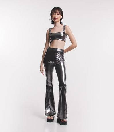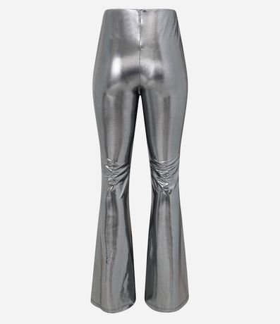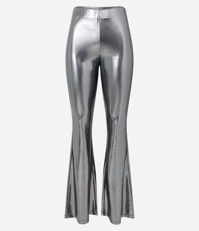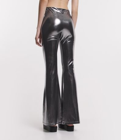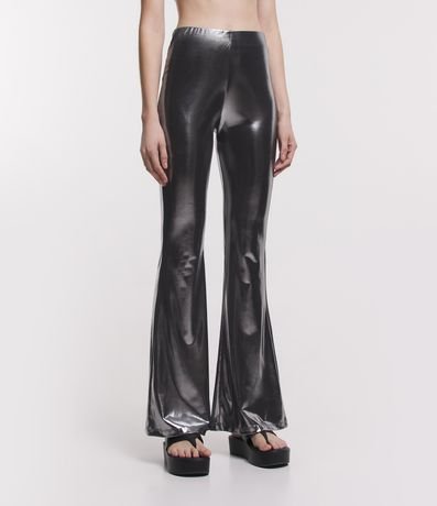 Ref: Calça flare, bailarina, revestimento brilhante com efeito laminado.