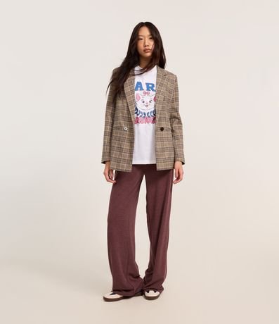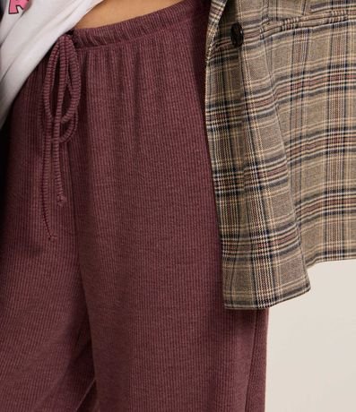 Calça flare com textura canelada, cós elástico com amarração e confeccionada com viscose certificada.