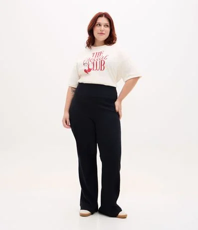 Calça Flare Canelada em Ribana com Cós Alto Curve e Plus Size