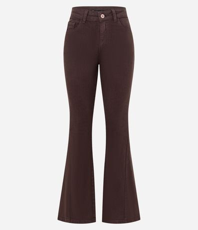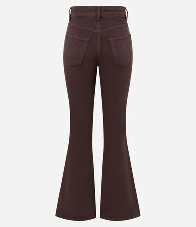 Ref: Calça flare confeccionada em sarja composta por algodão certificado BCI. A peça tem a costura lateral transpassada pela parte frontal da perna.