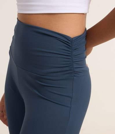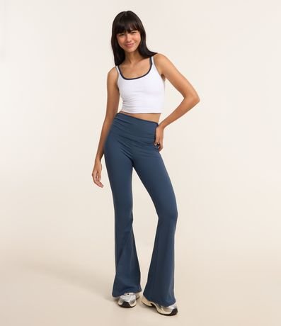 Calça feminina em microfibra no modelo flare com pala no cós.