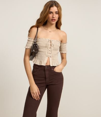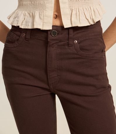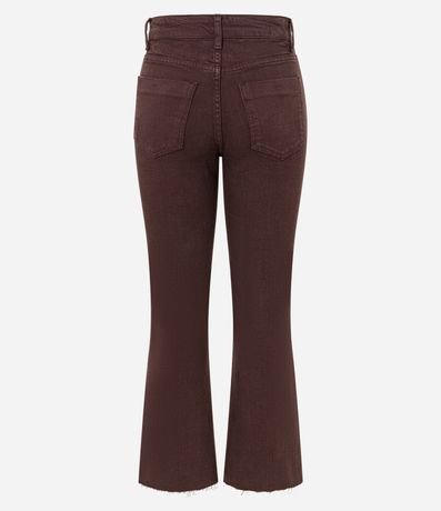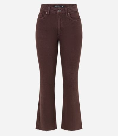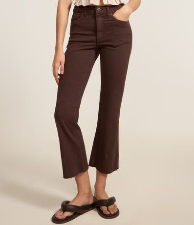 Ref: Calça jeans modelo flare com comprimento cropped e barra desfiadinha.