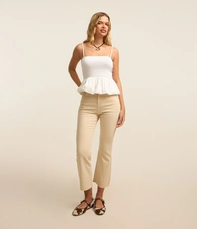 Ref: Calça flare, cropped confeccionada em sarja com elastano, cintura média e passantes no cós.